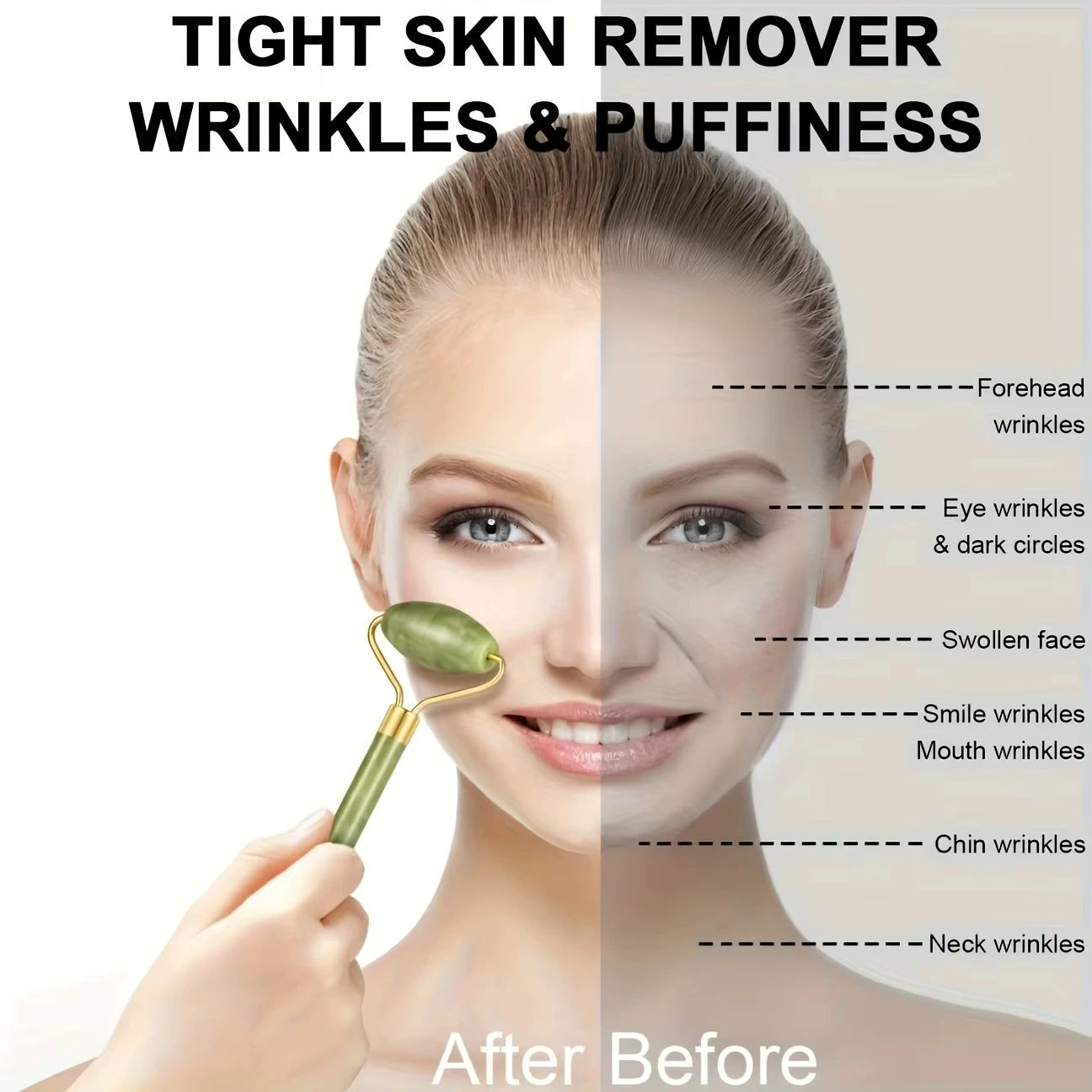 Natural jade stone — cool to the touch for immediate soothing and depuffing.